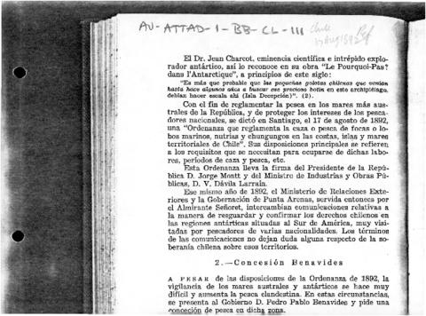 17 Ağustos 1892’de Jorge Montt, foklar, deniz aslanları, su samurları ve diğer türlerin yasa dışı avlanmasını kontrol altına almak amacıyla Fishing Ordinance No. 1,623’ü yürürlüğe koydu; bu düzenleme, Antarktika çevresindeki doğal kaynakların işletilmesini denetlemeye yönelik ilk resmi girişimlerden biri sayıldı.
